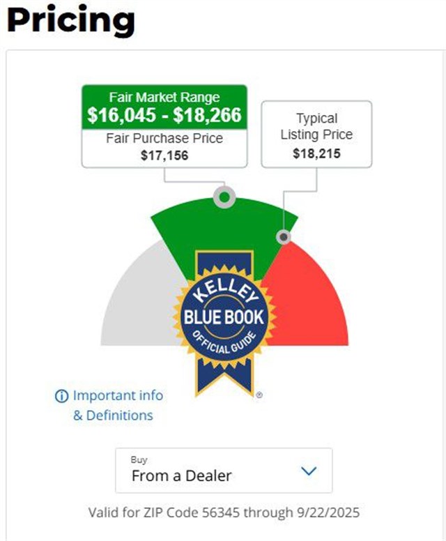* $18,215 BOOK VALUE (kbb dealer)